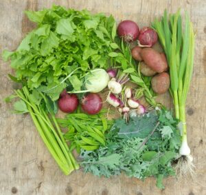 Every week you get a vibrant abundance of locally grown veggies, herbs, salads, seasonal mushrooms, microgreens, and fruit.